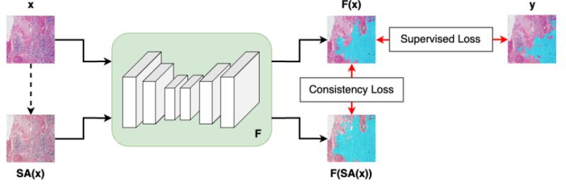 • 𝗧𝗵𝗲 𝗦𝗶𝗺𝗖𝗼𝗻𝘀 𝗙𝗿𝗮𝗺𝗲𝘄𝗼𝗿𝗸 & 𝗖𝗼𝗻𝘀𝗶𝘀𝘁𝗲𝗻𝗰𝘆 𝗟𝗼𝘀𝘀: To actively fix the variability, they propose SimCons, a framework that combines augmentation-based domain generalization techniques with a dedicated "consistency loss." By leveraging the spatially aligned patches of the exact same tissue from different scanners, this consistency loss explicitly penalizes the model if its outputs change depending on the scanning device. It effectively forces the model to ignore scanner-induced visual noise and anchor its predictions entirely on the underlying biology.