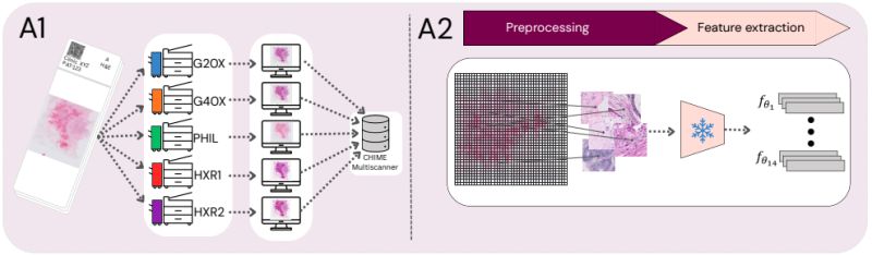 Real-world clinical deployment requires dealing with different hardware. If an AI model's embedding space fundamentally shifts just because a whole slide image (WSI) was digitized on a different machine, clinical reliability and generalization are at risk.