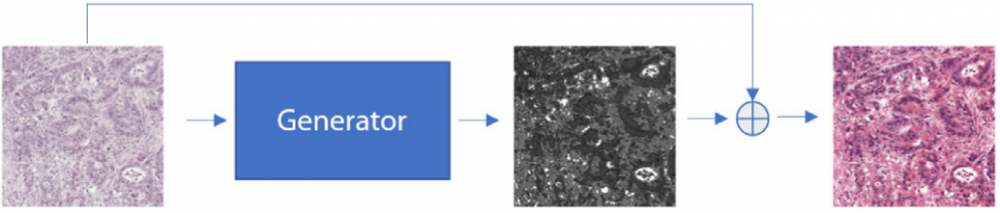 Whether you're working with a Conditional GAN or CycleGAN, residual learning can enable faster training with fewer training images required. And for extra help in preserving tissue structure, try incorporating semantic knowledge with a pretrained segmentation model.